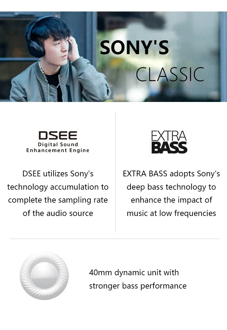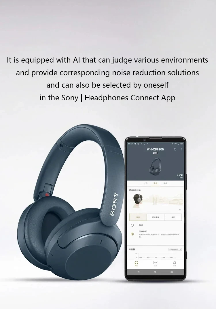 Casque sans fil à réduction de bruit Sony, casque Bluetooth supra-auriculaire.